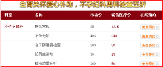 为了帮助广大患者早日摆脱疾病问题,广州仁爱医院特在国庆期间推出不孕检查五折优惠活动,希望对困难家庭有所帮助。预约电话:020-22229999或在线预约:我要预约。